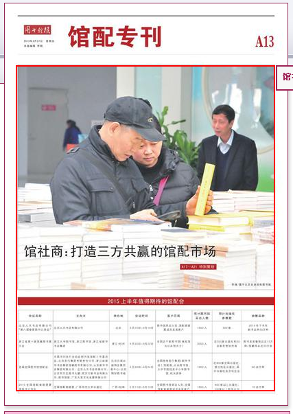 在2015最值得期待的浙江新华书店集团馆藏图书订货会开启在即,公司总经理俞峻先生3月接受受《图书馆报》邀约进行了专访。就2014年馆配市场出现的问题进行了总结和分析, 针对市场需求、行业信息缺乏空开、上下游和产品资源整合能力弱、数字出版给纸质图书带来的冲击等问题,俞总提出相应的解决之道和2015行业新期待。相信未来公司依托集团优势,整合上下游资源,为打造三方共赢的馆配市场做出相应的努力和贡献,为我们的图书客户提供更优质的图书馆配服务。